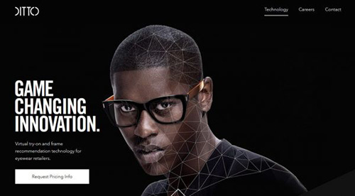 在展示不同元素、傳遞內(nèi)容信息上多邊形也是非常有效的一項(xiàng)工具。這是因?yàn)榛跀?shù)學(xué)和幾何學(xué)的多邊形可以更好的呈現(xiàn)輪廓、突出附加信息,幫助用戶更好的理解特定的元素與內(nèi)容。Ditto 和 Choudhary Lab 兩個(gè)網(wǎng)站就是很好的栗子。在Ditto這個(gè)網(wǎng)站中,多邊形被用在人臉上,這是服務(wù)于展示護(hù)目鏡測(cè)量原理的目的。