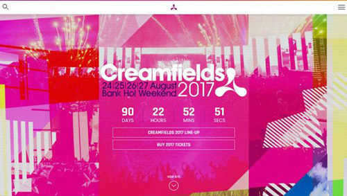 彩色背景+黑白色的多邊形(可參考 Creamfields 網(wǎng)站)